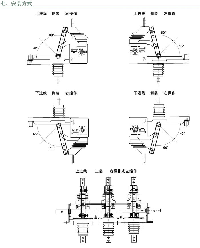 單斷點,三工位結構確保隔離開關合閘時不能接地,接地時不能合閘。